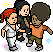 Patine na pista de Patinação Disco com 5 Habbos enquanto todos seguram a placa de slay!